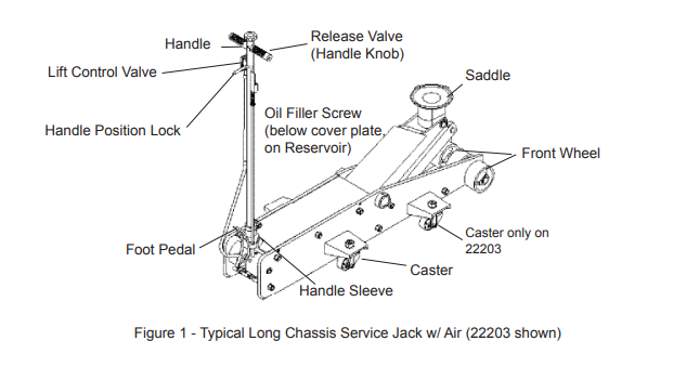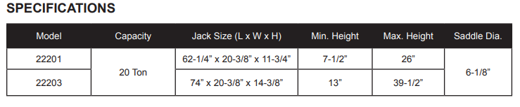 This heavy-duty jack is designed to lift large over-weight equipment, however it is not designed to support that equipment for a long period of time. Always use appropriately rated Jack Stands after lifting the equipment into place.