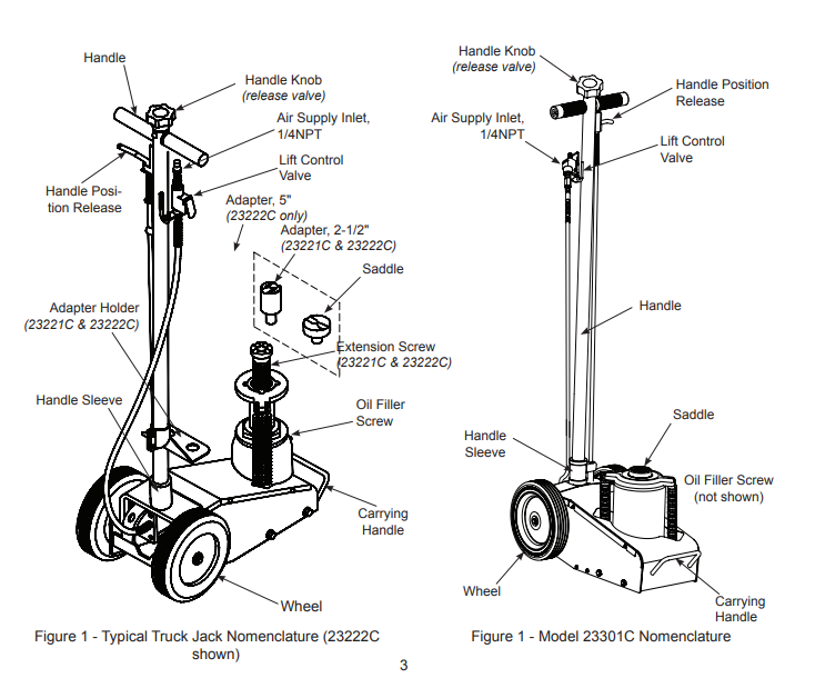 - Sturdy one piece handle assembly is standard on all Omega Truck Jacks