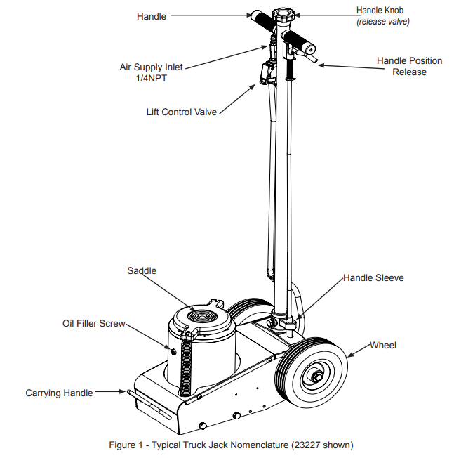 - Sturdy one piece handle assembly is standard on all Omega Truck Jacks