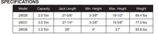 Rated for 3.5 Tons, this Omega 29038 jack has plenty of lifting power. Yet the hybrid design of aluminum and steel construction means it only weighs 86 lbs. Being lightweight itโs easy to carry or throw into the back of a truck for mobile service applications.